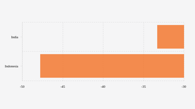 India mencatatkan penambahan kematian tertinggi di Asia dengan pertumbuhan mingguan mencapai -33,33 persen. Di negara ini, Worldmeter mencatat jumlah kematian sebanyak empat jiwa, bertambah dibandingkan pekan sebelumnya yang dilaporkan hanya enam jiwa, dan