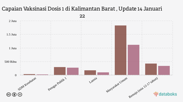 Cakupan vaksinasi dosis 1 di provinsi Kalimantan Barat, hari ini Jumat, 14 Januari 2022, telah mencapai 71,96 persen. Angka ini setara dengan 2,79 juta peserta vaksin dari target yang ditetapkan sebanyak 3,87 juta orang. Sementara untuk vaksinasi dosis 2 hingga kemarin telah tercapai 48,5 persen dari target.