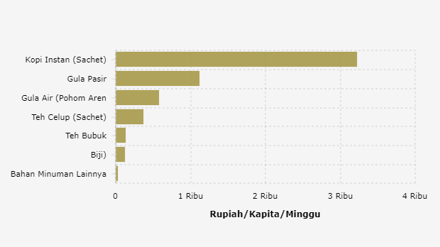 Rata-rata pengeluaran masyarakat di kabupaten Purwakarta untuk membeli kopi instan (sachet) pada 2023 sebesar Rp3.222,71 per kapita per minggu. Nilai ini melambung dibandingkan dengan pengeluaran tahun sebelumnya yang tercatat Rp2.604,43 per kapita per minggu.