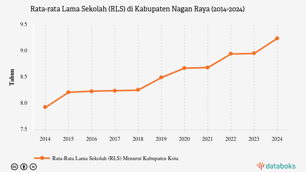 Rata-rata lama sekolah (RLS) penduduk berusia 25 tahun ke atas di Nagan Raya, Aceh sebesar 9,25 tahun pada 2024.