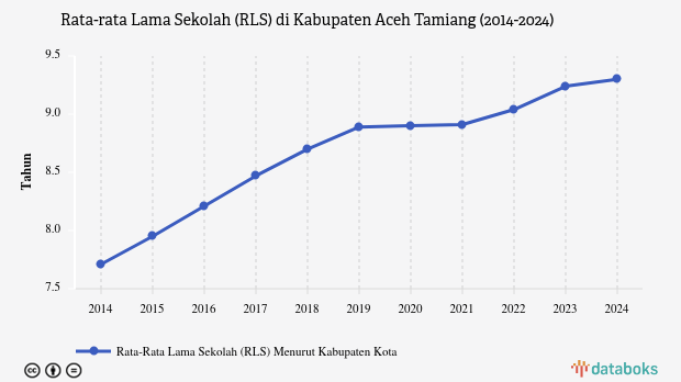 Rata-rata lama sekolah (RLS) penduduk berusia 25 tahun ke atas di Aceh Tamiang, Aceh mencapai 9,3 tahun pada 2024.