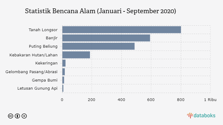 BNPB mencatat ada 2.127 bencana alam yang terjadi di Indonesia sampai 22 September 2020.