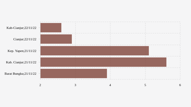"Gempa dirasakan Magnitude: 2.6 Skala Richter,22 November 2022 14:52:47 WIB", tulis BMKG pada keterangan rilisnya. Gempa terjadi pada koordinat pada 6.81 LS (Lintang Selatan) dan 107.06 BT (Bujur Timur).