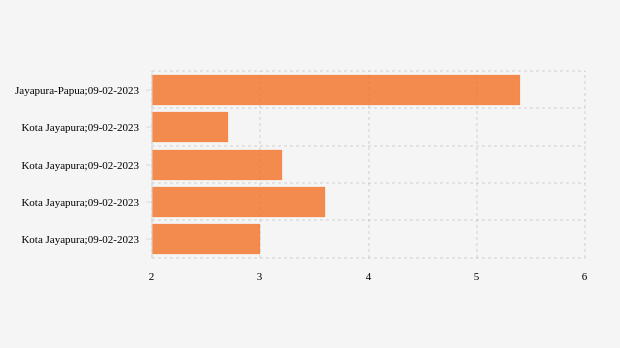 Gempa dengan kekuatan magnitude (M) 5,4 di Jayapura-Papua. Pusat gempat berada di 1."Pusat gempa berada di 1 BaratDaya km barat daya Jayapura-Papua dan tidak berpotensi tsunami." tulis BMKG (Badan Meteorologi, Klimatologi, dan Geofisika) melalui website resminya, 09 Februari 2023.