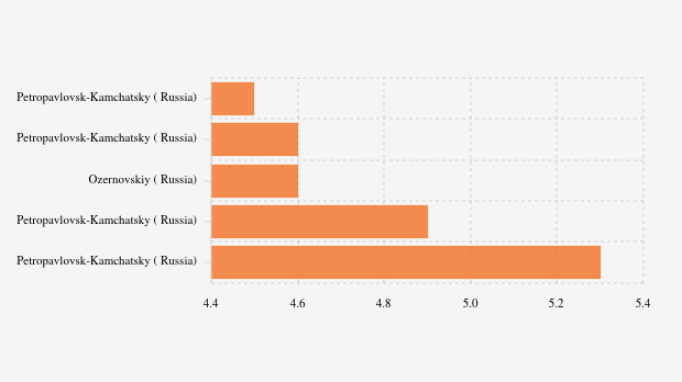 Gempa bumi dengan magnitudo 5.2 terjadi di Ozernovskiy, Russia pada tanggal 09 Agustus 2025 pukul 08:01:39 waktu setempat. Pusat gempa terjadi pada koordinat 158.2418 LU (Lintang Utara) dan 51.6323 BT (Bujur Timur) Ozernovskiy, Russia, gempa ini dirasakan hingga ke beberapa wilayah di sekitarnya.