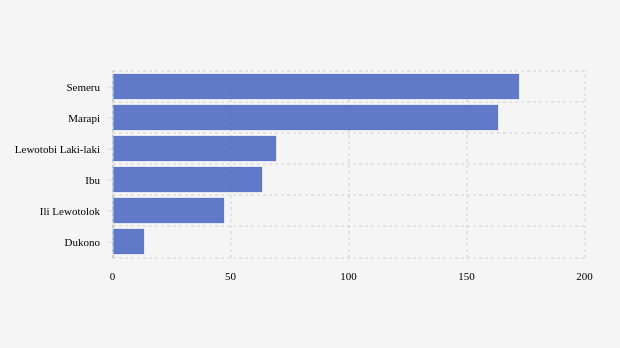 Gunung Lewotobi Laki-laki di Nusa Tenggara Timur kembali erupsi pada Minggu (14/4/2024) pukul 11.01 WITA. Dalam sepekan terakhir, gunung api tersebut sudah Erupsi 5 kali.