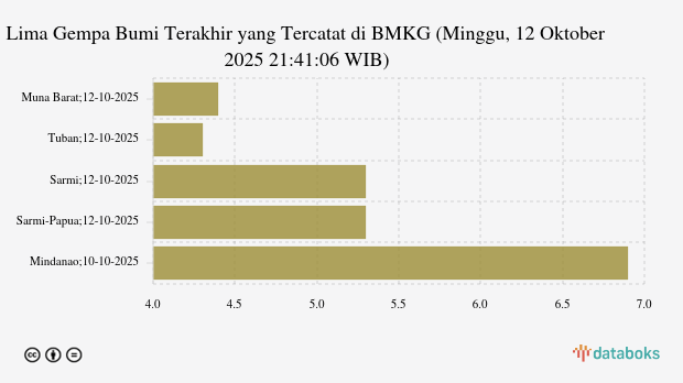 Gempa dengan kekuatan magnitude (M) 4,4 di Muna Barat."Pusat gempa berada di darat 22 km timur laut Muna Barat dan gempa ini dirasakan untuk diteruskan pada masyarakat." tulis BMKG (Badan Meteorologi, Klimatologi, dan Geofisika) melalui website resminya, Minggu, 12 Oktober 2025.