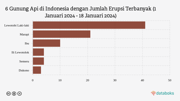 Selama tahun 2024, MAGMA Indonesia telah merekam 83 letusan/erupsi gunung api di seluruh Indonesia. Gunung Lewotobi Laki-laki di Nusa Tenggara Timur paling banyak erupsi (41 kali letusan) sedangkan Gunung Ili Lewotolok erupsi 4 kali.