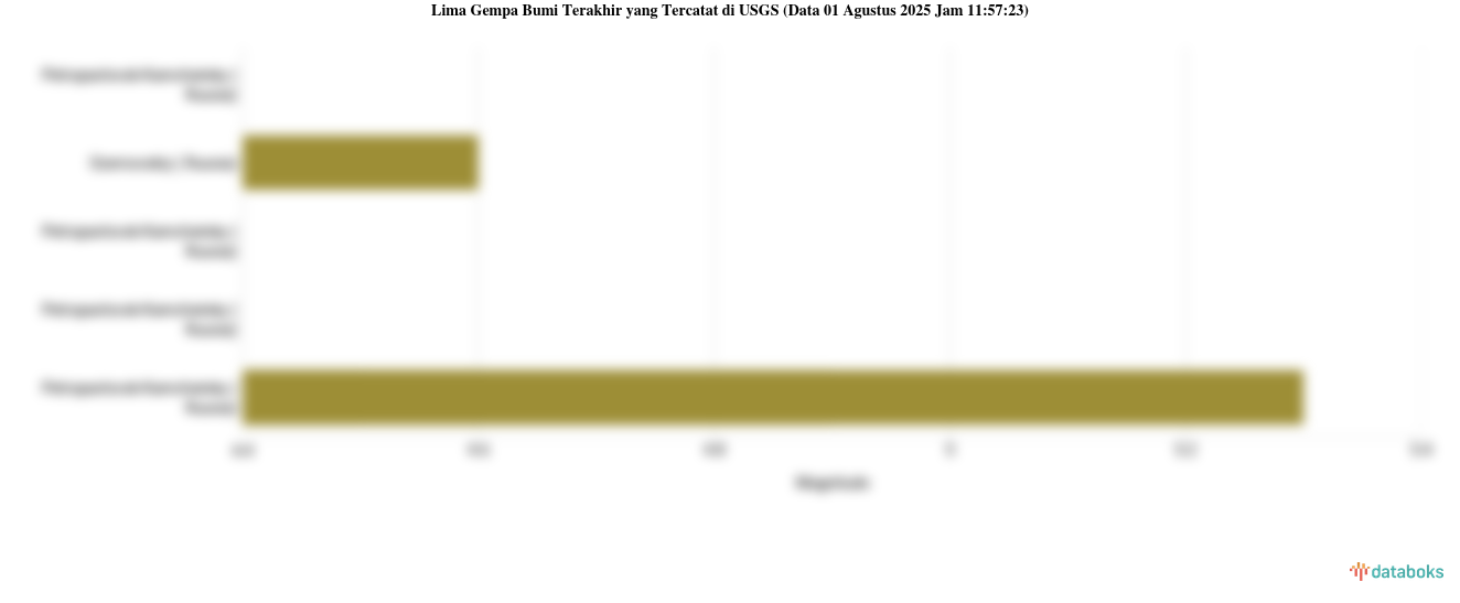 Gempa bumi berkekuatan sedang dengan magnitudo 5.9 mengguncang wilayah Vilyuchinsk, Russia pada tanggal 01 Agustus 2025 pukul 11:57:23 waktu setempat. Episenter gempa berada sekitar Vilyuchinsk, Russia tepatnya pada koordinat 160.0265 LU (Lintang Utara) dan 51.7431 BT (Bujur Timur).