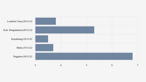 Peristiwa gempa terkini getarkan Lombok Utara berkekuatan 3.8 Skala Richter, pada 20 November 2022. Dalam Rilis Badan Meteorologi, Klimatologi, dan Geofisika (BMKG) pusat gempa bumi berada di laut sekitar 14 kilometer barat daya Lombok Utara.