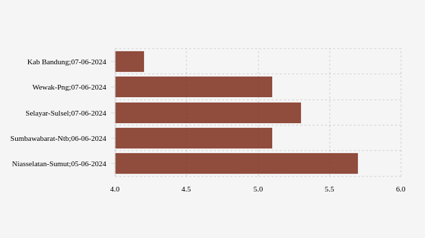 Gempa dengan kekuatan magnitude (M) 4,2 di Kab Bandung. Pusat gempat berada di laut."Pusat gempa berada di laut 89 km barat daya Kab Bandung dan gempa ini dirasakan untuk diteruskan pada masyarakat." tulis BMKG (Badan Meteorologi, Klimatologi, dan Geofisika) melalui website resminya, 07 Juni 2024.