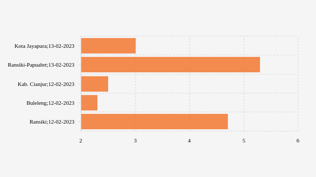 Gempa dengan kekuatan magnitude (M) 3,0 di Kota Jayapura. Pusat gempat berada di darat."Pusat gempa berada di darat 11 km barat laut Kota Jayapura dan gempa ini dirasakan untuk diteruskan pada masyarakat." tulis BMKG (Badan Meteorologi, Klimatologi, dan Geofisika) melalui website resminya, 13 Februari 2023.