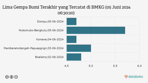 (Baca: BMKG: Gempa Terkini di Timur Laut Mukomuko Bengkulu Magnitudo 5,7, Tak Berpotensi Tsunami)