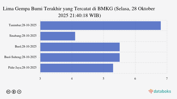 (Baca: Lima Gempa Bumi Terakhir yang Tercatat di BMKG (Selasa, 28 Oktober 2025 16:23:53 WIB))