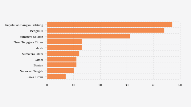 Titik panas terdeteksi paling banyak berada di Kepulauan Bangka Belitung sebanyak 47 titik. Bengkulu menempati posisi kedua jumlah titik panas terbanyak dengan 44 titik. Sumatera Selatan berada di posisi ketiga sebanyak 31 titik panas.