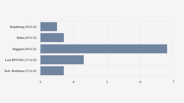 Gempa dengan kekuatan magnitude (M) 3.5 Skala Richter di Kepahiang. Pusat gempat berada di darat."Pusat gempa berada di darat 3 km Tenggara Kepahiang." tulis BMKG (Badan Meteorologi, Klimatologi, dan Geofisika) melalui website resminya, 19 November 2022.