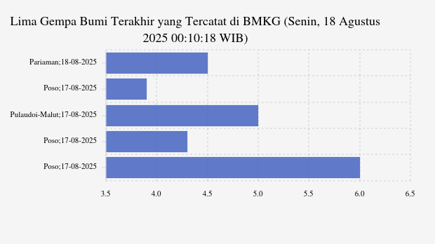 (Baca: Lima Gempa Bumi Terakhir yang Tercatat di BMKG (Minggu, 17 Agustus 2025 22:03:13 WIB))