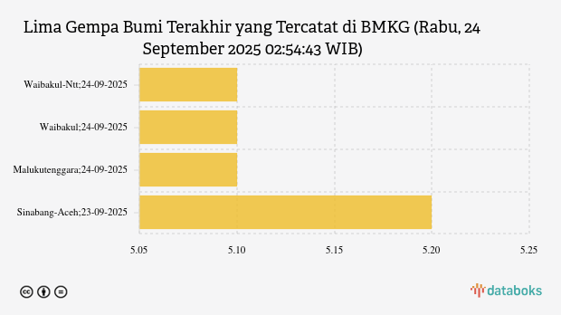 (Baca: Lima Gempa Bumi Terakhir yang Tercatat di BMKG (Rabu, 24 September 2025 01:50:39 WIB))