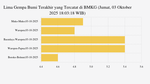 (Baca: Lima Gempa Bumi Terakhir yang Tercatat di BMKG (Jumat, 03 Oktober 2025 13:18:30 WIB))