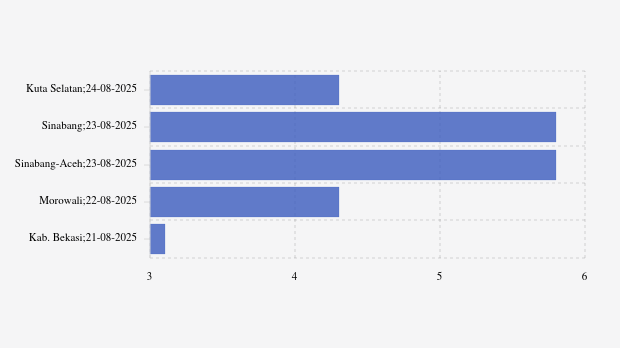 (Baca: Lima Gempa Bumi Terakhir yang Tercatat di BMKG (Sabtu, 23 Agustus 2025 19:24:53 WIB))