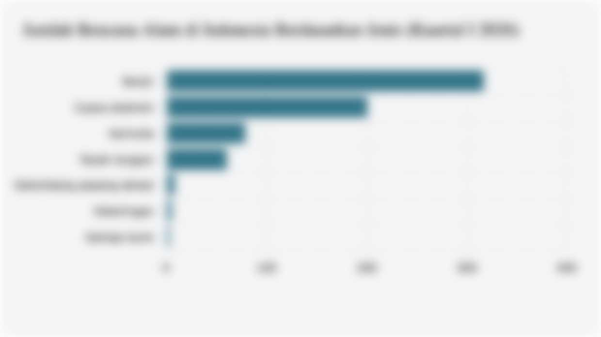 Menurut data BNPB, ada 671 kejadian bencana alam di Indonesia pada kuartal I 2026. Bencana alam paling banyak berupa banjir.