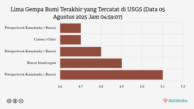 Lima Gempa Bumi Terakhir yang Tercatat di USGS (Data 05 Agustus 2025 Jam 04:59:07)