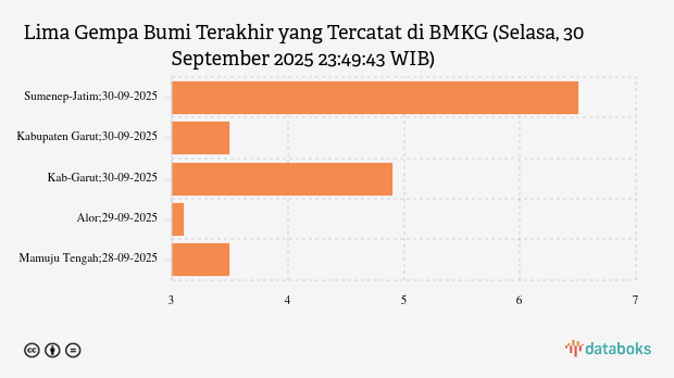 Lima Gempa Bumi Terakhir yang Tercatat di BMKG (Selasa, 30 September 2025 23:49:43 WIB)