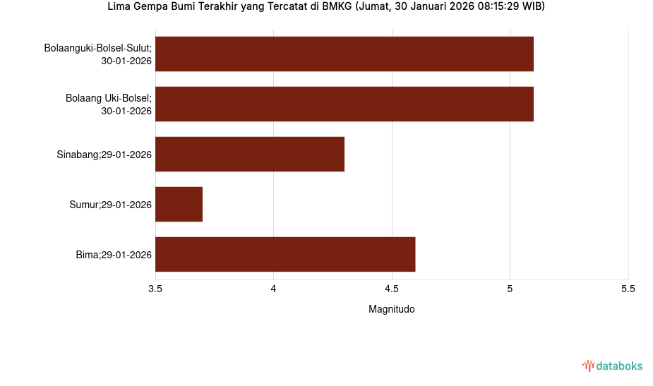 (Baca: Lima Gempa Bumi Terakhir yang Tercatat di BMKG (Jumat, 30 Januari 2026 08:15:29 WIB))