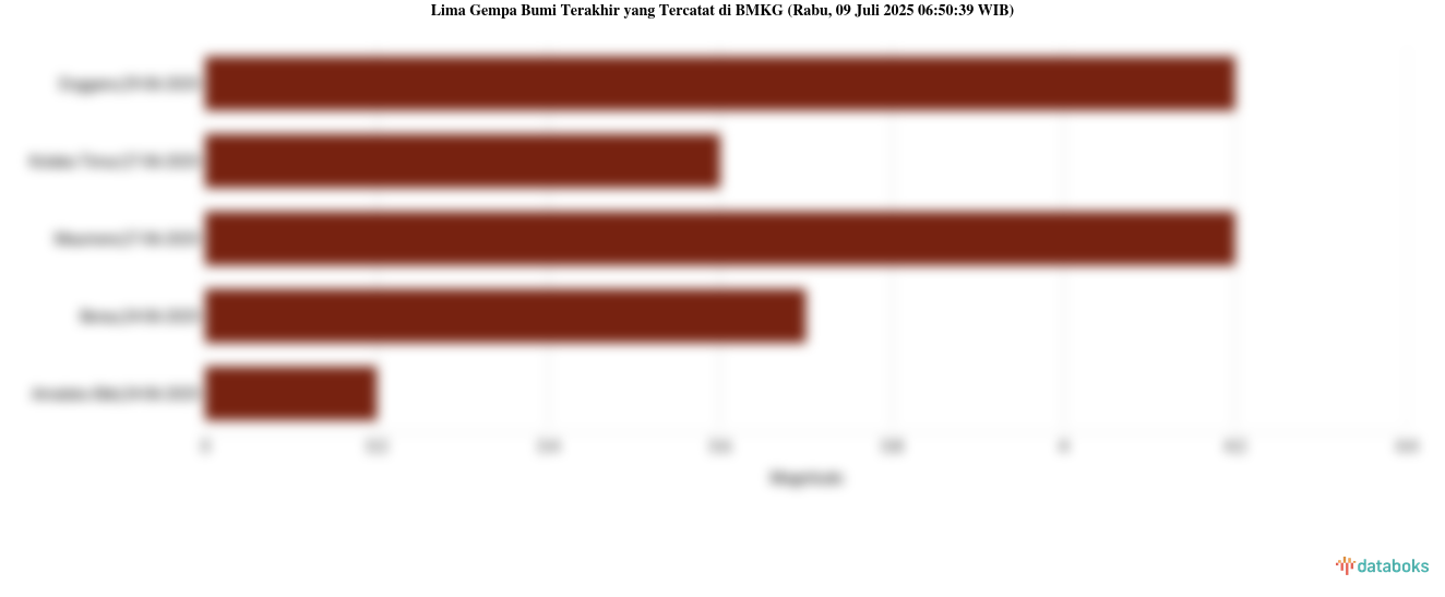 Gempa dengan kekuatan magnitude (M) 5,4 di Sumur."Pusat gempa berada di laut 95 km barat laut Sumur dan gempa ini dirasakan untuk diteruskan pada masyarakat." tulis BMKG (Badan Meteorologi, Klimatologi, dan Geofisika) melalui website resminya, Rabu, 09 Juli 2025.
