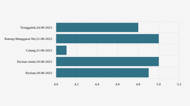 Gempa dengan kekuatan magnitude (M) 4,8 di Trenggalek. Pusat gempat berada di laut."Pusat gempa berada di laut 76 km barat daya Trenggalek dan gempa ini dirasakan untuk diteruskan pada masyarakat." tulis BMKG (Badan Meteorologi, Klimatologi, dan Geofisika) melalui website resminya, 24 Agustus 2023.