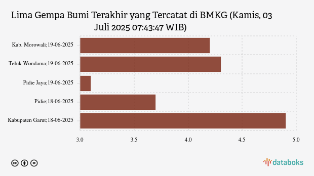 Lima Gempa Bumi Terakhir yang Tercatat di BMKG (Kamis, 03 Juli 2025 07:43:47 WIB)