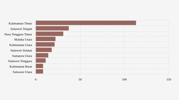 Titik panas terdeteksi paling banyak berada di Kalimantan Timur sebanyak 113 titik. Sulawesi Tengah menempati posisi kedua jumlah titik panas terbanyak dengan 37 titik. Nusa Tenggara Timur berada di posisi ketiga sebanyak 31 titik panas.
