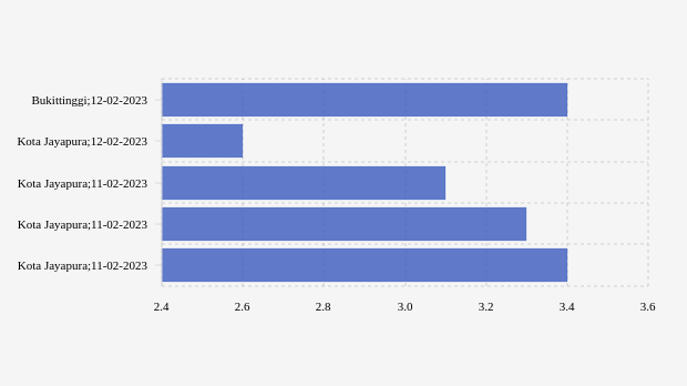 "Gempa dirasakan Magnitudo: 3,4 pada 12 Februari 2023 05:13:54", tulis BMKG pada keterangan rilisnya. Gempa terjadi pada koordinat pada 0.32 LS (Lintang Selatan) dan 100.31 BT (Bujur Timur).