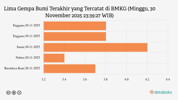 (Baca: Info Gempa Minggu, 30 November 2025 di Enggano 3,8 M, Tak Berpotensi Tsunami)