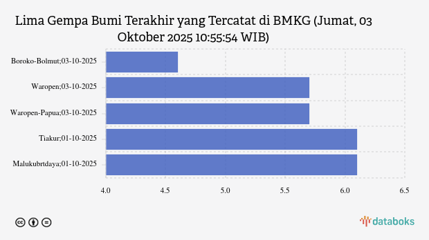 Lima Gempa Bumi Terakhir yang Tercatat di BMKG (Jumat, 03 Oktober 2025 10:55:54 WIB)