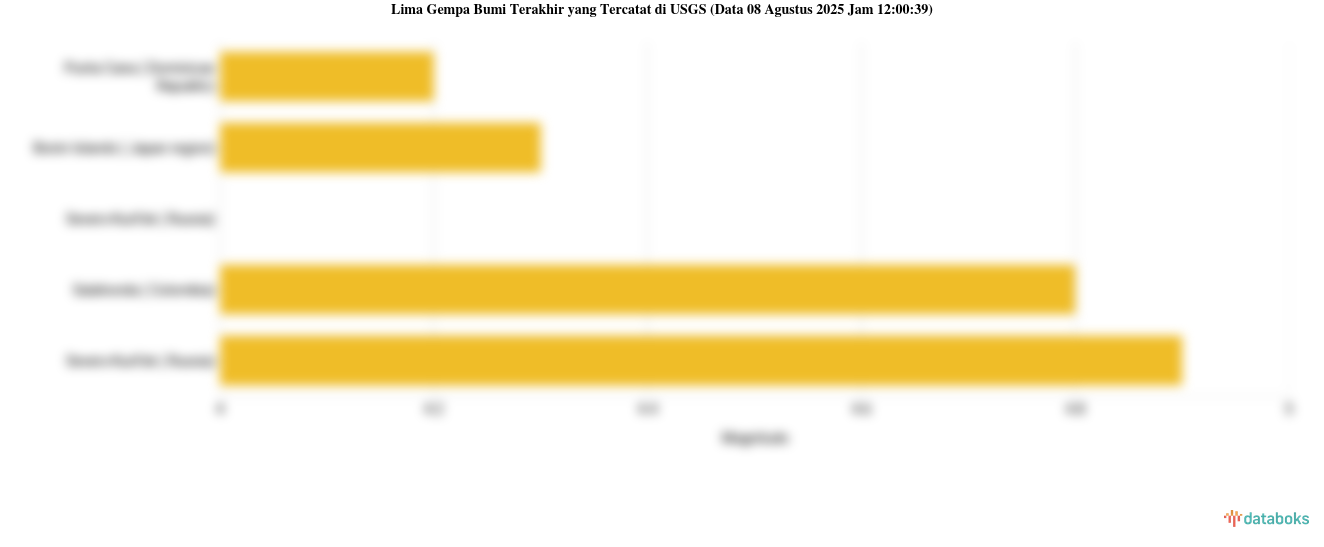 Lima Gempa Bumi Terakhir yang Tercatat di USGS (Data 08 Agustus 2025 Jam 12:00:39)
