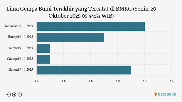 Gempa Hari Ini Senin, 20 Oktober 2025 Guncang Tanimbar