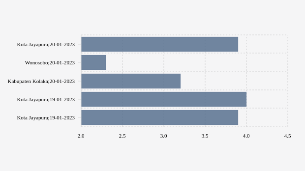 Gempa dengan kekuatan magnitude (M) 3,9 di Kota Jayapura. Pusat gempat berada di darat."Pusat gempa berada di darat 8 km barat daya Kota Jayapura dan gempa ini dirasakan untuk diteruskan pada masyarakat." tulis BMKG (Badan Meteorologi, Klimatologi, dan Geofisika) melalui website resminya, 20 Januari 2023.