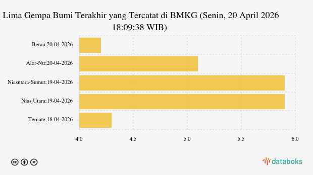 (Baca: Lima Gempa Bumi Terakhir yang Tercatat di BMKG (Senin, 20 April 2026 18:09:38 WIB))