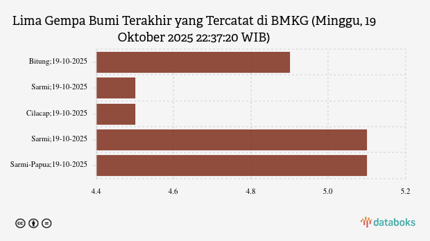 Info Gempa Minggu, 19 Oktober 2025 di Bitung 4,9 M, Tak Berpotensi Tsunami