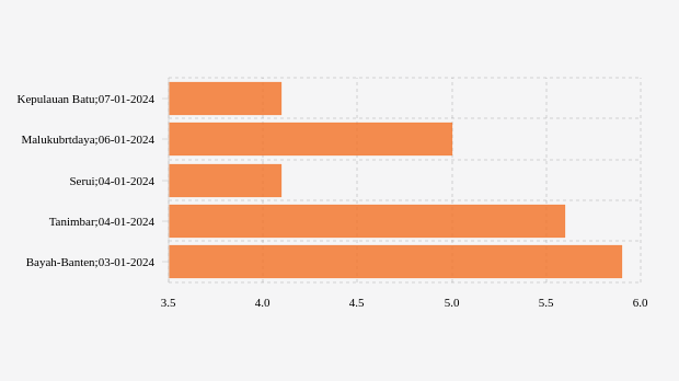 Gempa dengan kekuatan magnitude (M) 4,1 di Kepulauan Batu. Pusat gempat berada di laut."Pusat gempa berada di laut 66 km tenggara Kepulauan Batu dan gempa ini dirasakan untuk diteruskan pada masyarakat." tulis BMKG (Badan Meteorologi, Klimatologi, dan Geofisika) melalui website resminya, 07 Januari 2024.