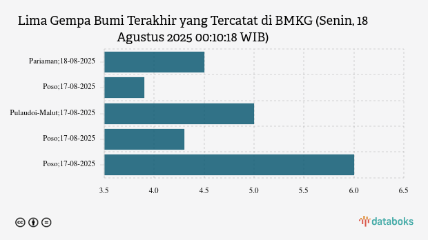 (Baca: Lima Gempa Bumi Terakhir yang Tercatat di BMKG (Minggu, 17 Agustus 2025 22:03:13 WIB))
