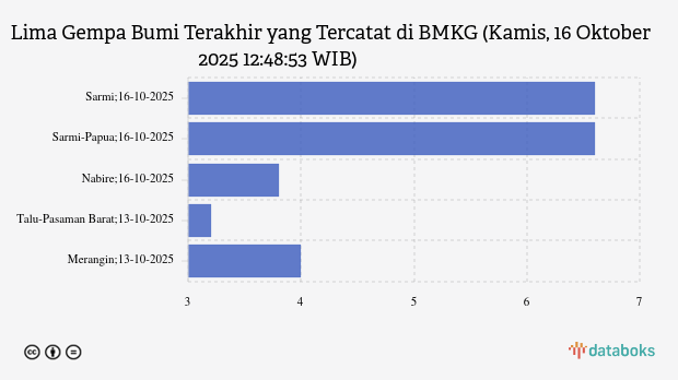 Lima Gempa Bumi Terakhir yang Tercatat di BMKG (Kamis, 16 Oktober 2025 12:48:53 WIB)