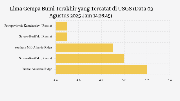 Lima Gempa Bumi Terakhir yang Tercatat di USGS (Data 03 Agustus 2025 Jam 14:26:45)