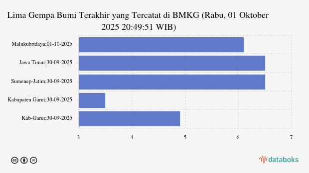 Lima Gempa Bumi Terakhir yang Tercatat di BMKG (Rabu, 01 Oktober 2025 20:49:51 WIB)