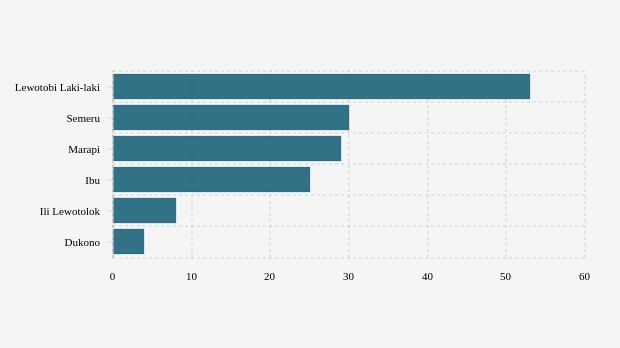 Gunung Ili Lewotolok di Maluku Utara kembali erupsi pada Minggu (4/2/2024) pukul 23.56 WIT. Dalam sepekan terakhir, gunung api ini masih aktif selama tujuh tahun.