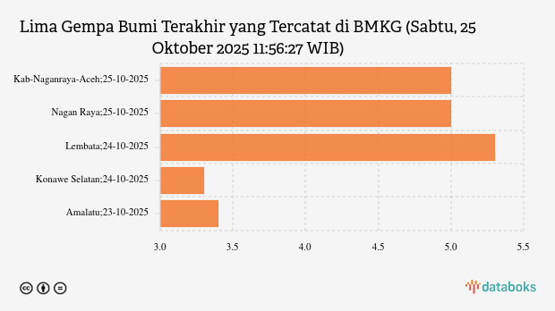 Lima Gempa Bumi Terakhir yang Tercatat di BMKG (Sabtu, 25 Oktober 2025 11:56:27 WIB)