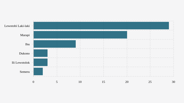 Gunung Lewotobi Laki-laki di Nusa Tenggara Timur kembali erupsi pada Selasa (16/1/2024) pukul 20.58 WITA. Dalam sepekan terakhir, gunung api ini sudah Erupsi 6 kali.
