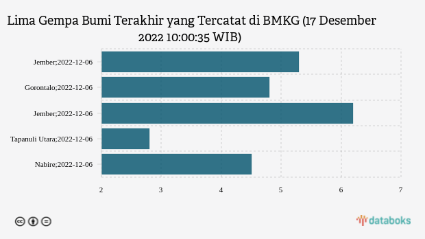"Gempa dirasakan Magnitudo: 3,1 pada 17 Desember 2022 10:00:35 WIB", tulis BMKG pada keterangan rilisnya. Gempa terjadi pada koordinat pada 3.93 LS (Lintang Selatan) dan 122.43 BT (Bujur Timur).