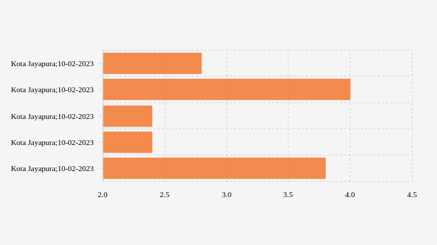Gempa dengan kekuatan magnitude (M) 2,8 di Kota Jayapura. Pusat gempat berada di darat."Pusat gempa berada di darat 10 km barat daya Kota Jayapura dan gempa ini dirasakan untuk diteruskan pada masyarakat." tulis BMKG (Badan Meteorologi, Klimatologi, dan Geofisika) melalui website resminya, 10 Februari 2023.